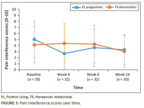 METHODOLOGY: Therapeutic relationship (TR) intervention alone or in combination with the PL programme were allocated to HIV-positive men between the ages of 18-40. Pain intensity and interference were the primary outcome measures. Secondary outcome measures included physical function, health-related quality of life, depressive symptoms and self-efficacy.