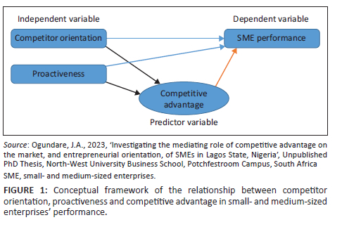 BACKGROUND: As small- and medium-sized enterprises (SMEs) are the primary source of job creation in Nigeria and contribute 48% of the country's gross domestic product (GDP), their performance must be enhanced and sustainability ensured. The article suggests that through competitor orientation and proactiveness, SME managers and owners can achieve competitive advantage which ultimately promotes firm performance.