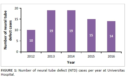 This study aimed to determine if there was an increase in the incidence of NTDs in live and stillbirths in the Free State province (FS) from 2012 to 2016 as reflected by Universitas Hospital's (UH) records.