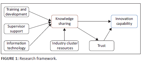 Keywords: industrial cluster resources; knowledge sharing; information technology; trust; supervisory support; training and development; innovation capability.
