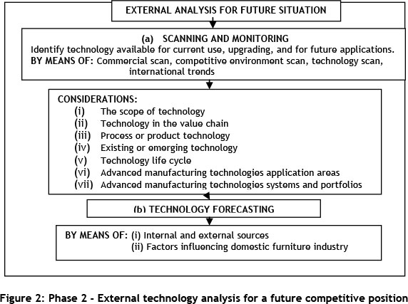 Various methods and sources of scanning and forecasting will be used to determine the type and application of technology available. Having executed an external analysis, the next step is to conduct an internal analysis.
