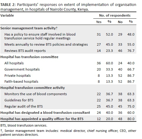 Organisational management of hospital blood transfusion services in Nairobi County, Kenya: Evidence of implementation