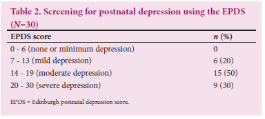 All participants were screened for postnatal depression using the EPDS. The results are summarised in Table 2.