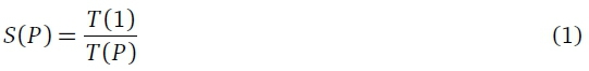 The speed-up on P processors, S(P), is the ratio of the execution time on 1 processor, T(1), to the execution time on P processors, T(P) (Chamberlain et al., 1998). In an ideal situation, we expect the execution time of the application to scale linearly with the number of processors. As for DL_POLY_2.18 (small system), Figure 1 shows the impact of network on the speed of the MD simulations running on the e1350 cluster.