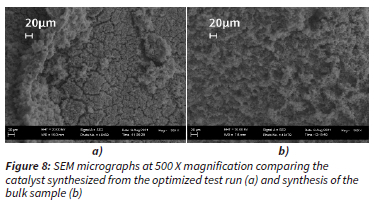 The catalyst samples produced were examined using Scanning Electron Microscopy (SEM) using a Zeiss Crossbeam 540 SEM at 20 kV to determine the morphology and particle size of the catalyst and to determine the catalyst coverage on the mesh substrate.