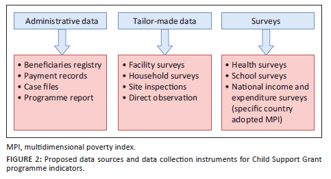 It is recommended that standards be established to ensure the reliability, credibility and protection of personal information on the CSG database and that appropriate verifications be implemented from the point of registration to the end of data entry into the software or database. Paper-based systems should be replaced by electronic systems with appropriate security measures to protect sensitive information. Figure 2 proposes data sources for the proposed indicators for the CSG programme.