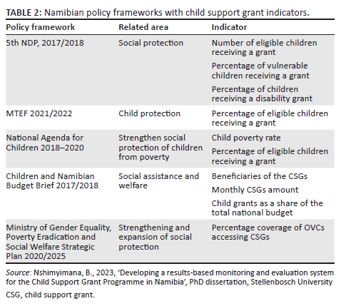 This article is based on the author's dissertation entitled 'Developing a Results-Based Monitoring and Evaluation System for the Child Support Grants Programme in Namibia' towards the degree of Doctor of Philosophy (PhD) in Public Management and Development Planning in the School of Public Leadership, Stellenbosch University, South Africa on December 2023, with supervisor Prof Babette Rabie. It is available here: https://scholar.sun.ac.za/items/7c8136da-b8c1-4ee6-a807-766ed9545efc.
