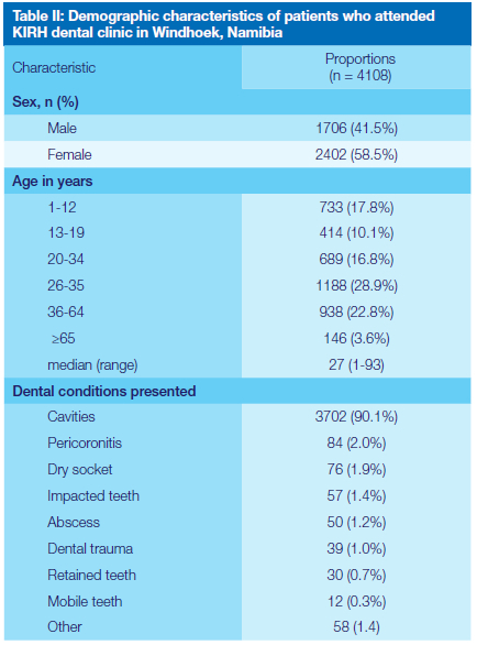 AIMS AND OBJECTIVES: This study aimed to report on the prevalence of different types of oral health diseases in patients attending a dental clinic in Windhoek (Namibia) and quantify the pharmaceutical expenditure incurred.
