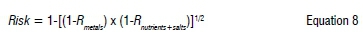 The risk results of the (1) metals and (2) nutrients and salt assessments were integrated into a single risk number (between 0 and 1) per site per sampling interval as follows: