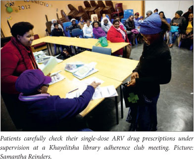 Dr Musaed Abrahams of the hugely stretched Ubuntu Clinic in Khayelitsha summed up initial clinician sentiment about the club system this way: 'My day is spent seeing many patients who are otherwise well and stable on treatment. My time would be more usefully spent focusing on starting new patients on ART and giving more time to my patients who are not doing well on their treatment. As the pressure on the health system increases, retention in care and adherence of patients on ART decrease.' The national numbers dramatically illustrate his widely shared views: there were 1.79 million patients initiated on ART by mid-2011 - with retention in care estimated at less than 60% at four years. South Africa's National Strategic Plan for 2012 - 2016 targets 80% of all patients eligible on ART by 2016 (more than 3 million people), with 70% retained in care five years after treatment initiation. The escalation of ART initiation over the last five years has shifted South Africa from a lingering global AIDS treatment pariah to universal admiration, but the country does not have the necessary capacity to double patient loads while managing an increasing number of patients at risk of failing their treatment. This is where the MSF intervention is proving to be worth its weight in gold.