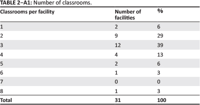 Official standards require that children of different ages be accommodated in different groups and classes (Department of Social Development 2010:110-111). From the research it became clear that a serious attempt was made to comply with the formal requirements regarding the division of classes per age groupings (Box 1-A1).