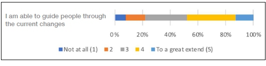 A number of important points can be raised from the responses, of which 97% mentioned that the DRC will still exist in twenty years' time, with the majority of them (72%) indicating that it will take on a different form.5 Of the respondents, 74% indicated that they believe that they will still be in ministry twenty years or more from now. While it was a formal connection to the DRC that initiated the invitation to participate, the responses also indicate a strong sense of seeing an ongoing involvement with and commitment to the DRC - for the majority of their working lives at least. They also described themselves as mostly competent in leading people through the current changes.