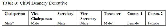 The table above shows that two members from St Matthew's (a and d) took key posts at deanery level, and on the whole no female from Chivi Deanery was eligible for a diocesan post. Just as women from St Matthew's were not represented in the deanery executive, so were all the women in Chivi Deanery not represented in the Diocesan executive, though they remained the key financiers of the very structures that refused to hear their voices. They were afforded more time to cultivate "better homes and better fields" to host and feed the church.