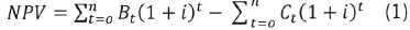 Cost benefit analysis (CBA) is a standard technique used to assess the desirability of an investment project (Watkins, 2010). More specifically, the costs and benefits of a project are determined and compared. The measured costs and benefits are weighed up against each other to establish criteria for decisionmaking. Normally, one or more of the following three decision-making criteria are used, namely the net present value (NPV), the internal rate of return (IRR) and the discounted benefit cost ratio (BCR) (Hanley and Spash, 1993). The NPV determines whether the sum of discounted benefits (B) exceeds the sum of discounted costs (C). The NPV can be formally expressed as follows: