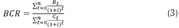 The IRR decision rule is that the project should proceed if the IRR exceeds the discount rate(i). The BCR is a different way of expressing the NPV (Hanley and Spash, 1993). More formally, the BCR can be expressed as follows: