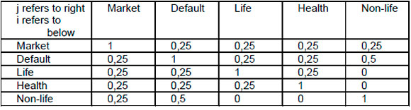 SCRi denotes the sub-module i and SCRj denotes the sub-module j, and where Corr means that the sum of the different terms should cover all possible combinations of i and j. In the calculation, SCRi and SCRj are replaced by the following: SCR nl premium and reserve denotes the non-life premium and reserve risk sub-module and SCR nl catastrophe denotes the non-life catastrophe risk sub-module.41