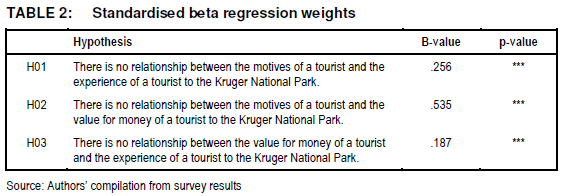 It is therefore the aim of this article to determine whether there is a relationship between the travel motives , value for money and the experience of tourists to the Kruger National Park.