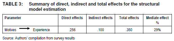 Secondly, the results further indicated that the effect of motive on experience has a mediate effect through value for money (Table 3).