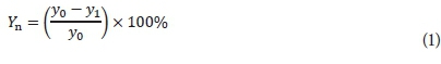 where Yn, y0 andy , respectively, represent the response variable, initial and final values for the coagulation flotation process.