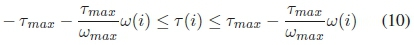 4) Motor Model: In order to get a more accurate representation of the applied torques on the quadruped model, a simple motor power model was implemented which limited the total torque available depending on the relative angular rate of the motor as follows [29]: