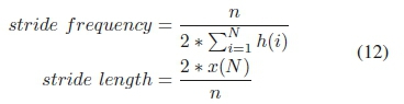 Next the stride frequency and length was analyzed. These parameters were calculated for the trajectory as follows:
