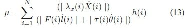 Where λx(i) is the horizontal ground reaction force of the foot on the ground for the ithnode, X(i) is the forward velocity for the ithnode, while the denominator represents the force/torque multiplied by the actuators respective velocity and h(i) is the time duration of the ithnode.