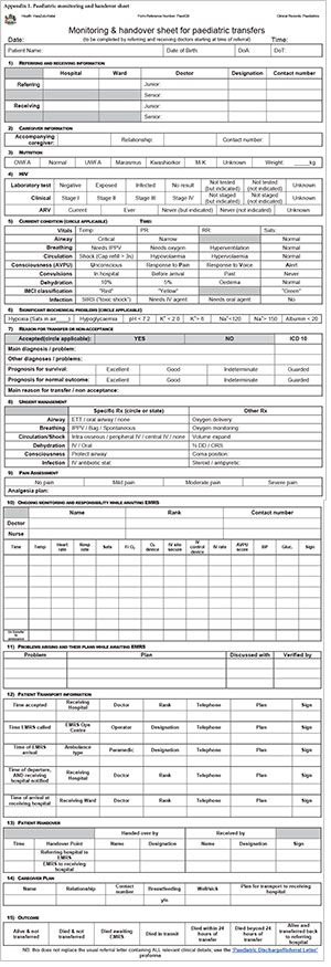 7. Bennett NR. Transfer of the critically ill child. Current Paediatrics 1995;5(1):4-9. [ Links ]