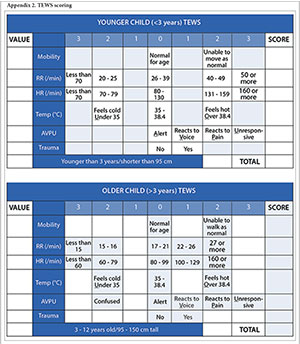 As this was a retrospective study, incomplete clinical records and inadequate documentation was a limitation. This is notable in that not all children could be ascribed a TEWS score at base and/or on arrival owing to a lack of recording or measuring of vital signs.