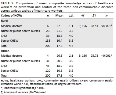 Knowledge of primary healthcare workers regarding the prevention and control of non-communicable diseases in Osun State, Nigeria: A rural-urban comparison
