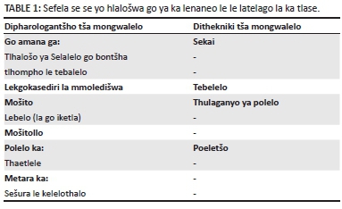 Sefela se se yo hlaloswa go ya ka lenaneo le le latelago la ka tlase (Table 1).,