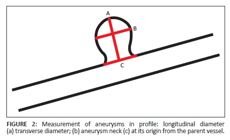 Overall, there are limited published data on the topic of aneurysm size at rupture in the South African context. However, Blignaut et al. found human immunodeficiency virus (HIV) infection to be an important comorbid condition concerning aneurysm morphology, younger patient age and a smaller average aneurysm rupture size than that of the general population in another study conducted at Universitas Academic Hospital.11 Although this study does not differentiate between HIV-infected and HIV-uninfected individuals, further local research is warranted to determine how the local aneurysm characteristics and affected patient profiles correlate with the recommended international guidelines.