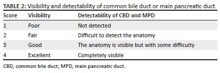 There was substantial agreement between reviewers on all study items: measured SI from the stomach (κ = 0.97, 95% confidence interval [CI] 0.96-0.98) and the duodenum (κ = 0.88, 95% CI 0.83-0.92); perceived SI from the stomach (κ = 0.81, 95% CI 0.73-0.87) and the duodenum (κ = 0.9, 95% CI 0.86-0.93); subjective assessments of the visibility of the CBD (κ = 0.88, 95% CI 0.83-0.92) and MPD (κ = 0.91, 95% CI 0.86-0.94).