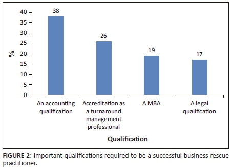 The first question of the survey required responses to the two most important qualifications required to be a successful business rescue practitioner. The feedback is illustrated in Figure 2.