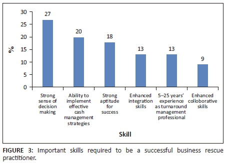 Overall, it can be concluded that a successful business rescue practitioner must possess an accounting qualification or be an accredited TMP. In addition to a qualification, a successful business rescue practitioner must possess certain important skills, as discussed next.