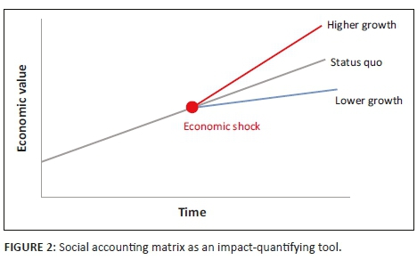 The benefits of using a SAM in this context were twofold: firstly, it allowed the economic significance of the campus within the provincial context to be quantified and, secondly, it allowed an economic analysis of shocks within the economy. Figure 2 shows how an incident in the economy can change the economic value over time.