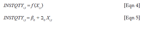 Where INSTQTY and X represents INSTQTY index and regressors,1 respectively. We specify the system-GMM model below which took its bearing from Equation 6.