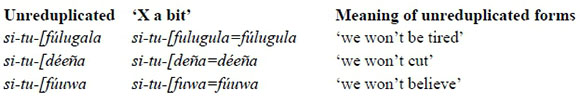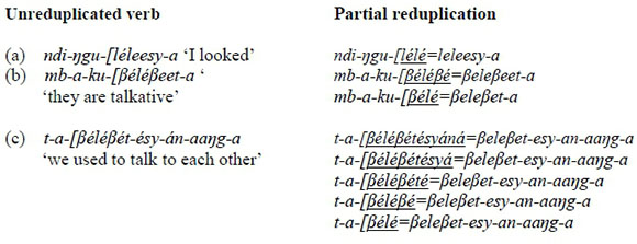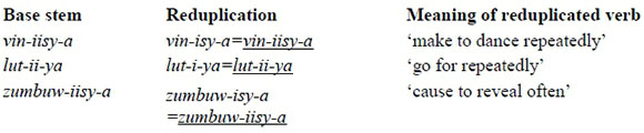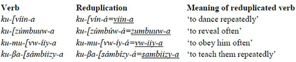 (13) Chichewa verbal reduplication (Myers and Carleton 1996:49)