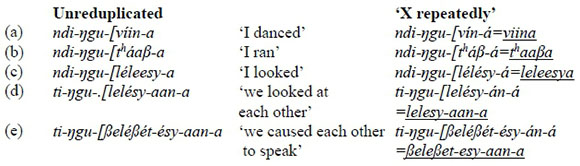 (15) Shona verbal reduplication: total reduplication (Hewitt 1992; Odden 1984:35)