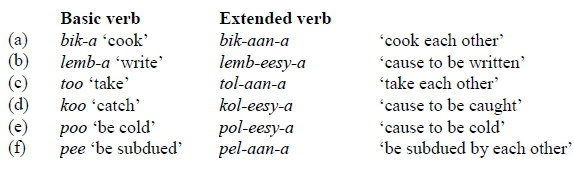 (5b) Reduplication of a verb root plus an extension and a final vowel (Mtenje 2006)