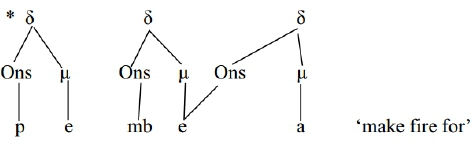 Thus, the inputs to the verb stems in the first column in (31) above are predicted to be /wotch-el-a/, /pemb-el-a/, etc. Non-high vowels, being more sonorous than high vowels, make bad onsets, and as such they are not allowed in syllable margins in this language (cf. Zec 2007). Since the liquid of the final syllable is deleted, the final inflectional vowel [-a] is left stranded (onset-less) (e.g. pembe-a). It seems, therefore, that since an onset cannot be obtained for the final syllable, the end result is that both the liquid and the low vowel of the final syllable are elided.10 This claim is illustrated in (32) below.