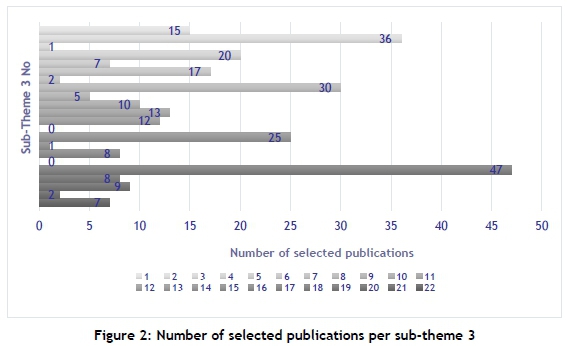 Table 2 shows, in brackets, the number of selected publications per main theme.