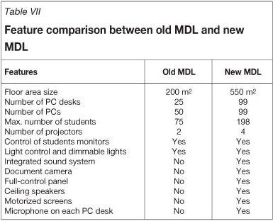 The new MDL became partially operational in September 2010. The Computerised Mine Design (capstone) course was the first course taught in the new facility in 2010. Since then, all the School's computer-related courses have been scheduled to run in the new laboratory starting from 2011. Table VII compares the available features between the old and the new MDL. TableVIII shows the computer-related subjects taught in the new MDL during 2010 and 2011, indicating the numbers of students, course success rates, and the average mark for each course. Table IX compares the success rates between the old MDL and the new MDL, and Table X compares the average marks.