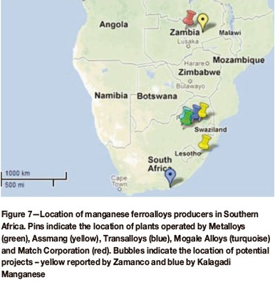 There are currently four producers of manganese ferroalloys in South Africa - Metalloys, Assmang, Transalloys, and Mogale Alloys (Basson, Curr, and Gericke, 2007), and one in Zambia - Match Corporation (Wadhavkar, 2012).