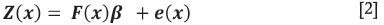 where F(x) is an n W (k + 1) matrix with rows which usually depend on the spatial coordinates alone and/or other explanatory variables, β is a vector of k + 1 unknown parameters, and e (x) is an n + 1 vector of error terms with mean 0 and variance-covariance matrix Σ (θ). The covariance between any two points is taken here to be a function of the Euclidean distance between the two points and the vector of parameters θ =(θ0, θ1,θ2), corresponding, in order, to the nugget, the partial sill, and the range. Other functions for the covariance between points, such as the exponential and the Matirn, which depend on more or fewer parameters, can also be invoked (Diggle and Ribeiro, 2007). The covariance between any two points, xt and xj is denoted as Cov[Z(xi), Z(xj)] = C(xi - xj; θ) and for i, j = 1,..., n are the elements of the variance-covariance matrix.