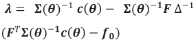 where c(θ) is the n W1 vector (C(x0-x1; θ), ... , (C(x0-xn; θ)), Δ = FTΣ(θ)-1F and f0 = FTλ. It then follows that the BLUP at x0 is given by