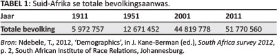 Ndebele, T., 2012, 'Demographics', in J. Kane-Berman (ed.), South Africa survey 2012, pp. 1-96, South African Institute of Race Relations, Johannesburg. [ Links ]