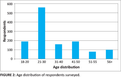 Of the respondents, 47% were female and 53% male. When one considers Figure 1 (market segment), then the age distribution is not surprising since students and people in first-time employment will tend to be younger.