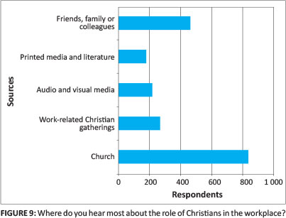 This is somewhat concerning when one considers that the respondents believe that they get most of their teaching about their role as Christians in the world of work from ministry leaders and the church (see Figure 9). This should serve as a signal to seminaries, Theology faculties and Bible colleges that ministers require more training to adequately support their members in the world of work.