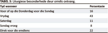 Die orreliste se respons hierop word in Tabel 3, Liturgiese besonderhede deur orrelis ontvang, weergegee (Van Rooy 2009:441).