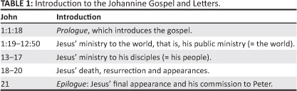 Scholars have proposed many structures for this Gospel (cf. Van der Watt 2007:12; Kostenberger 2004:vii; Brown 2003:298-310; Keener 2005:xi-xxiv; Moody Smith 1999:710; Stibbe 1993; Whitacre 1999:45-48; Carson 1991:105-108; Sloyan 1988; Beasley-Murray 1987:xci-xcii; Barret 1978:v-vi; Lindars 1972:70-73; Brown 1966:CXXXIIX). Some are extremely detailed and others less so. One example is that of Van der Watt (2007:12) in his Introduction to the Johannine Gospel and Letters, shown in Table 1.